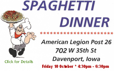 Post Meetings2nd Monday of the monthDinner - 6:00pm ($7)Meeting - 7:00pm702 W. 35th St., Davenport, IA 52806563-322-4971 Post26AL@gmail.com |