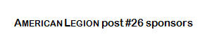 Post 26 is very grateful to its sponsors, below you will find a list of of the individuals and business' that donated to the American Legion Post 26. Click here to learn more about sponsoring the American Legion Post 26. |